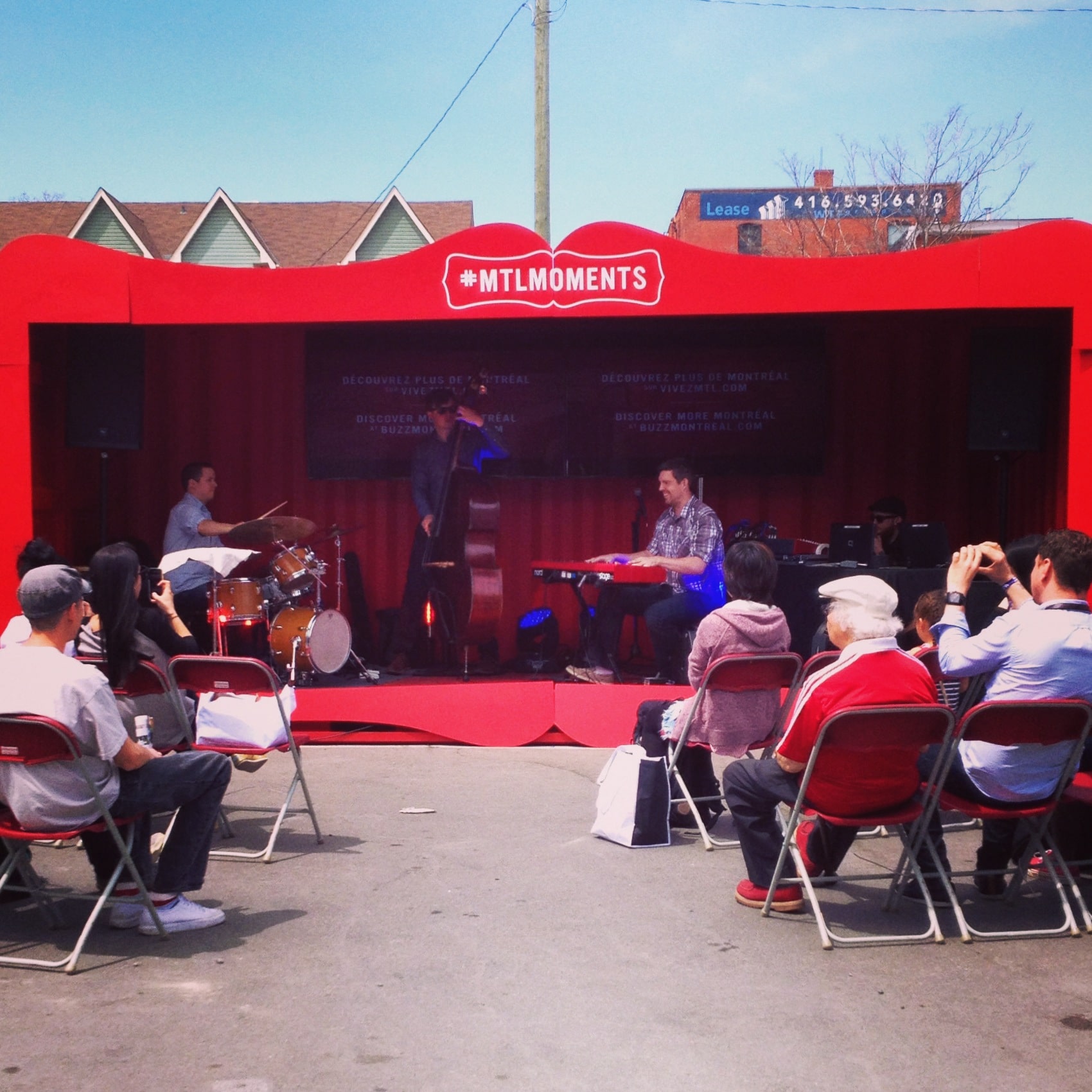 … l’esprit Rock and roll… ou plutôt jazzy pour le coup de Montreal Tourisme qui customise un grand conteneur aux couleurs de #MTLmoments pour faire du marketing de rue à Toronto avec un groupe de musique, un food truck pour des concerts quasi sauvages :