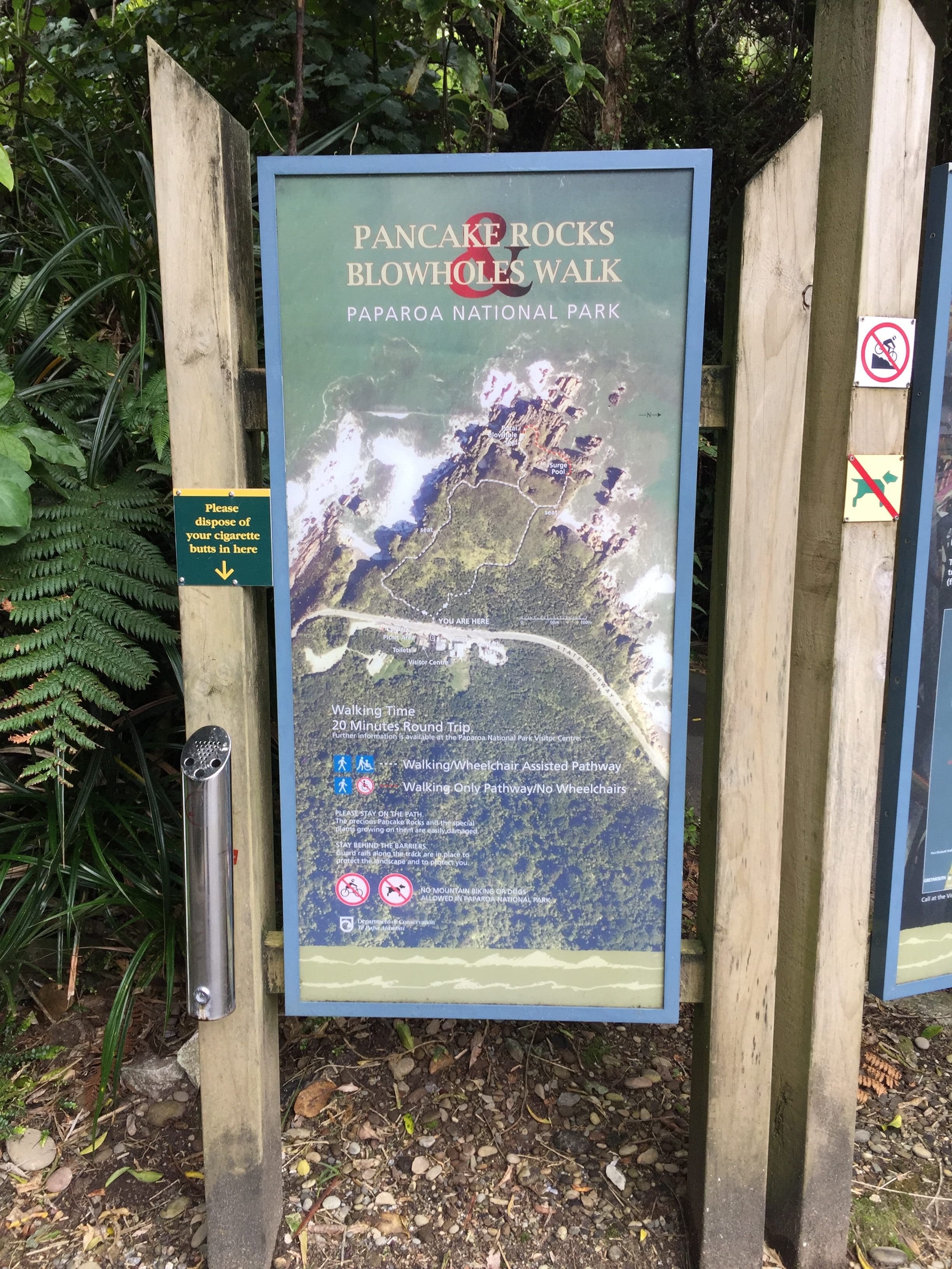 - Aux Pancakes Rocks on vous demande de jeter votre mégot de cigarette avant d’aller vous promener sur le bord de mer