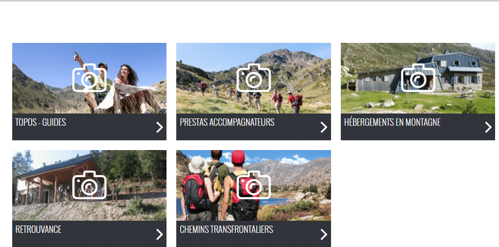 La rubrique dédiée présente des accompagnateurs et des hébergements mais aussi une partie topoguide