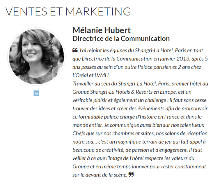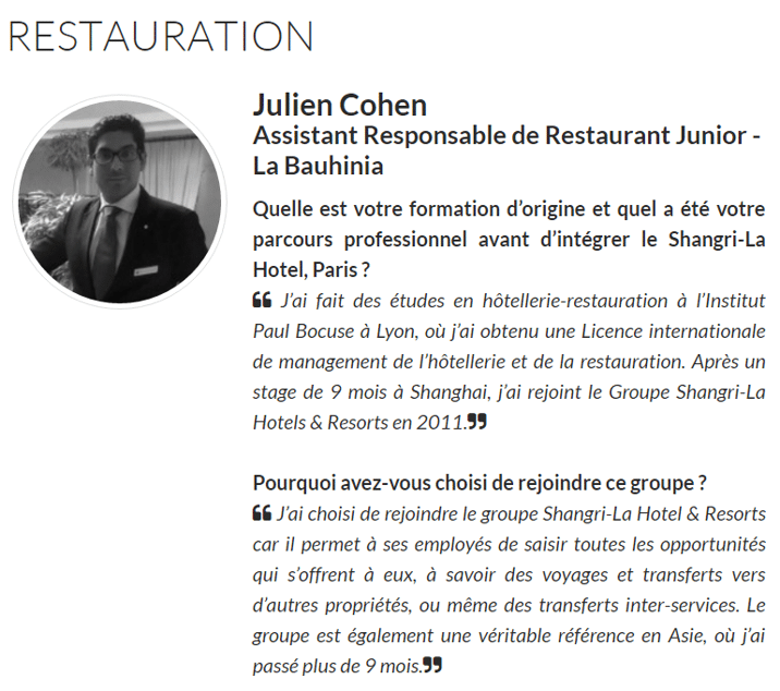 Le Shangri-La Paris est sans doute un des meilleurs exemples en réalisant un site complet dédié à ses ressources humaines.